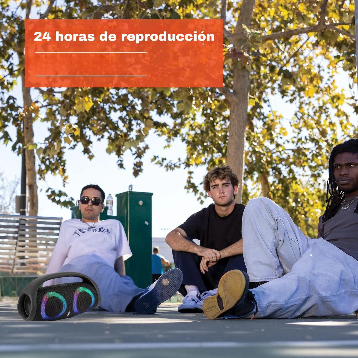 Este altavoz portátil inalámbrico te permite llevar tu música favorita a cualquier parte, ya sea bajo la lluvia o en una fiesta en sala. Es completamente resistente al agua y su potente batería asegura largas horas de entretenimiento sin interrupciones.